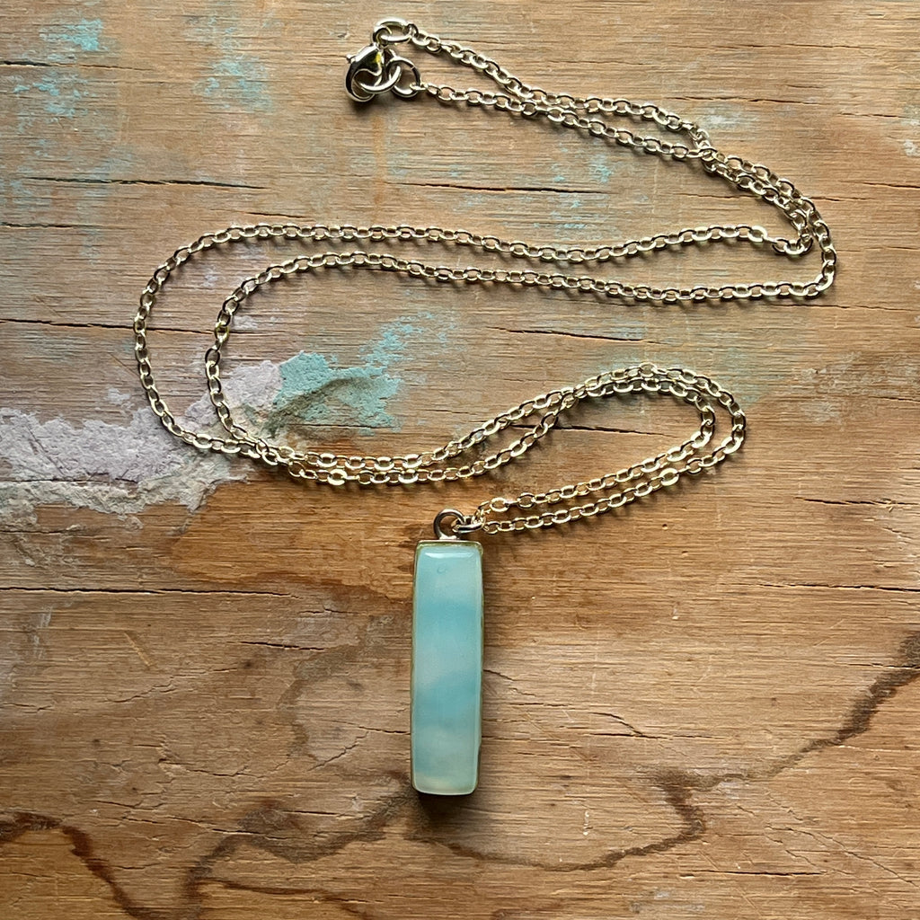 Swirly Blue Sterling Bar Necklace- One of a Kind